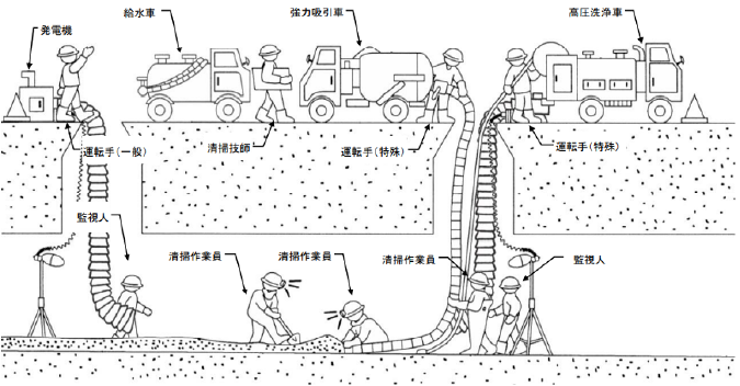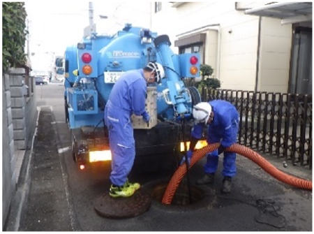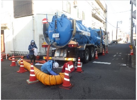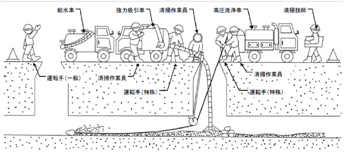 ❶ 〈 清掃、浚渫 〉 吸引車清掃、高圧洗浄車清掃 Cleaning, dredging